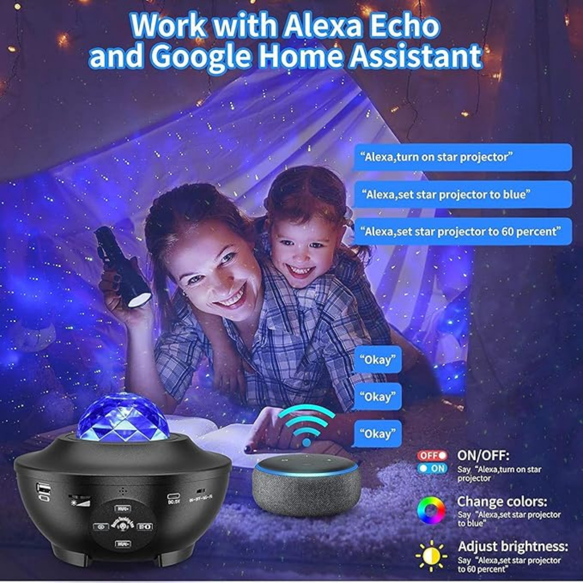 With adjustable colors, brightness, and modes, you can customize the ambiance to suit your mood. Compact, stylish, and easy to use, this projector is the ultimate décor piece to light up your nights.